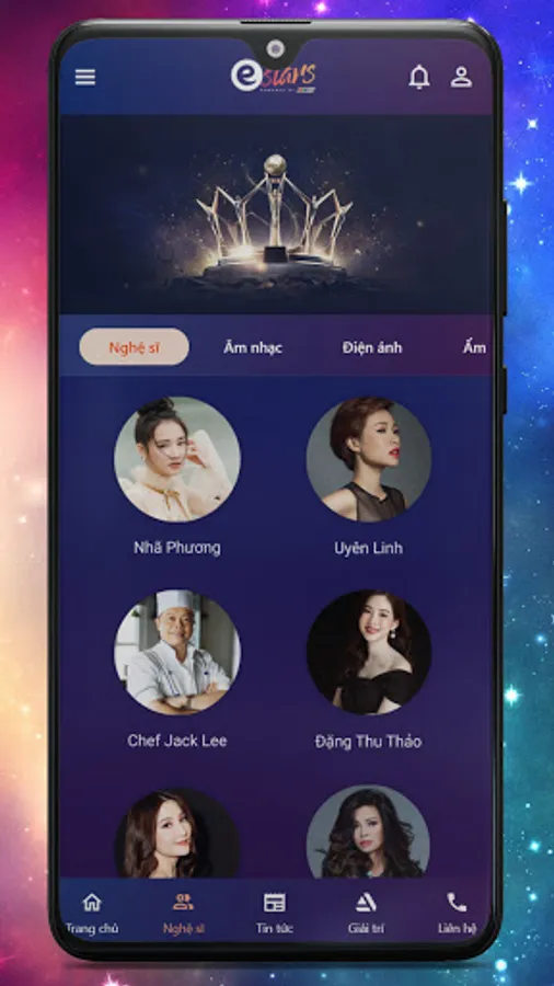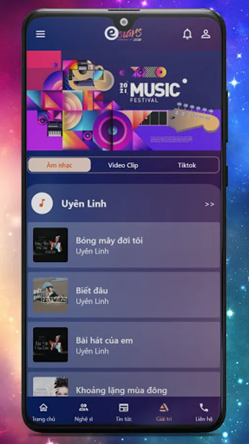 With the eStars - Digital Star application, you can quickly update the latest news on the entertainment and information fields of Vietnamese stars that you love.