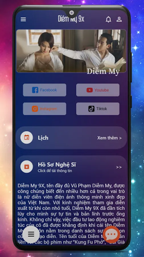 Welcome to the Diem My 9x App. With the application, you can quickly update the latest news about the actress. In addition, you can also entertain with video clips, movie excerpts, as well as daily activities of Diem My 9x.