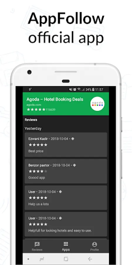 AppFollow app lets you monitor all the reviews from your AppFollow.io account and reply to them. Open any app from your collection and check if its reviews are fine or not. AppFollow track apps in Apple App Store, Google Play, Windows and Amazon stores.