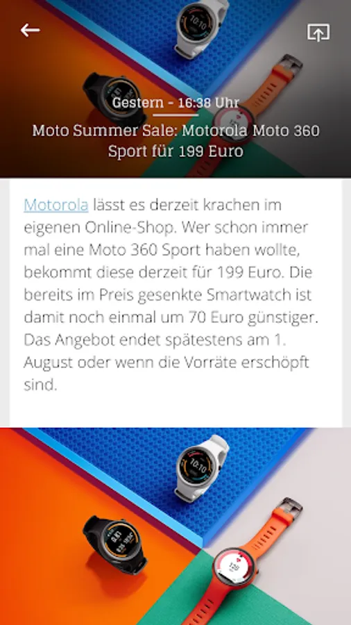 Our die SmartWatch app keeps you around the clock via Smartwatch- and wearables-News informed. Once an article is published in Die-Smartwatch.de, you get the news dewy on your homescreen.