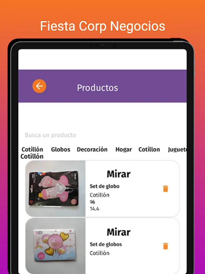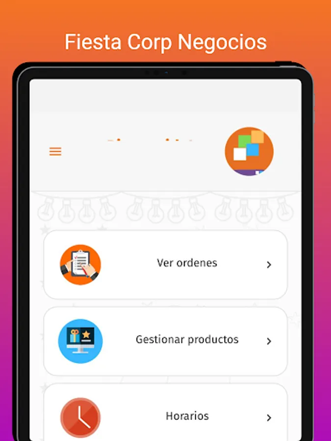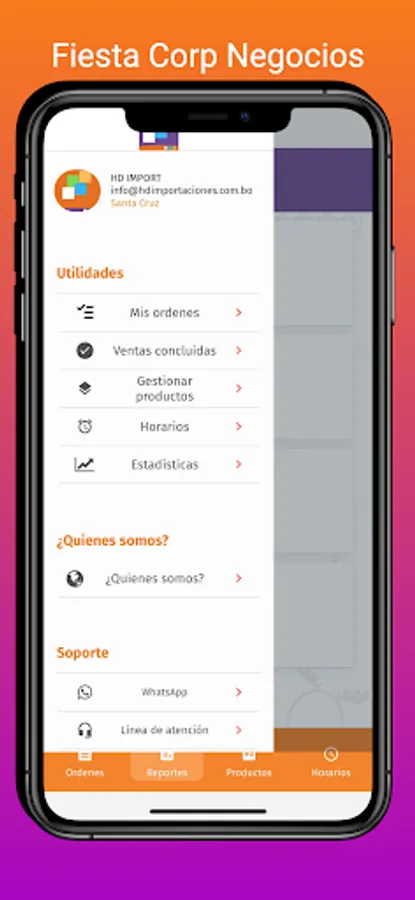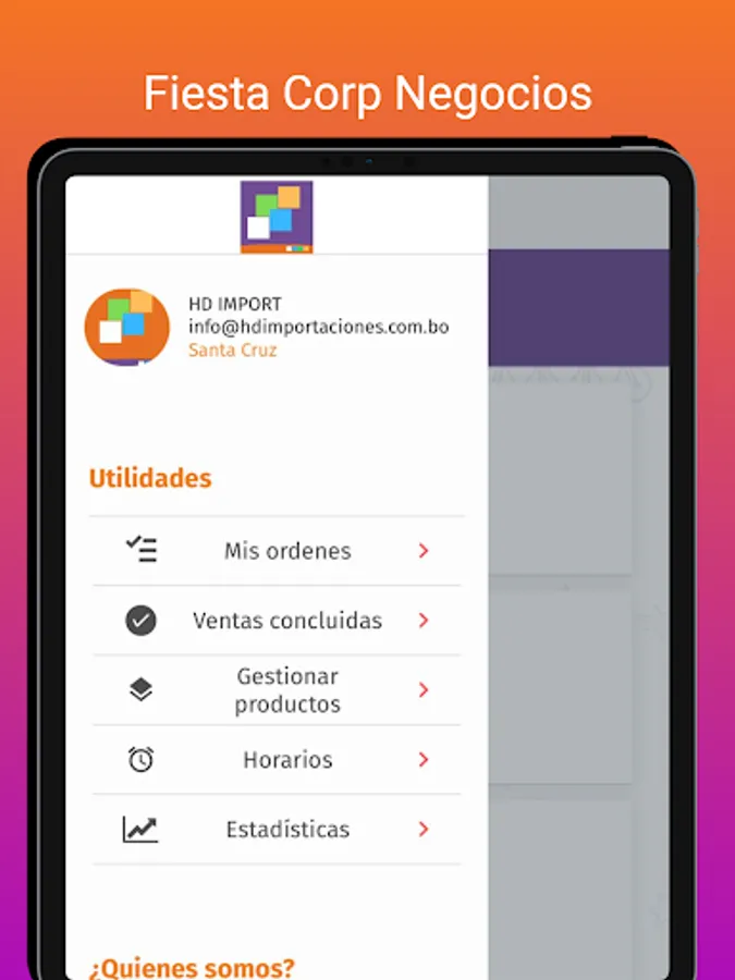 Fiesta Corp application administration panel, so that affiliated businesses can add and manage their products, attend to order orders, search for distributors, view sales reports and order statistics.