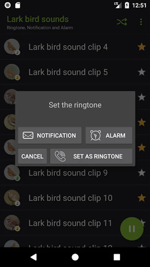 - Set as ringtone, notification and alarm clock.