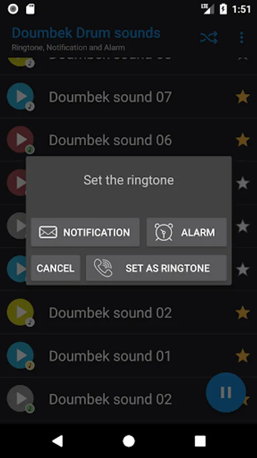 - Set as ringtone, notification and alarm clock.