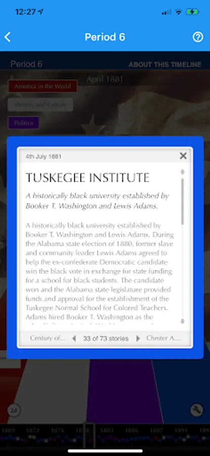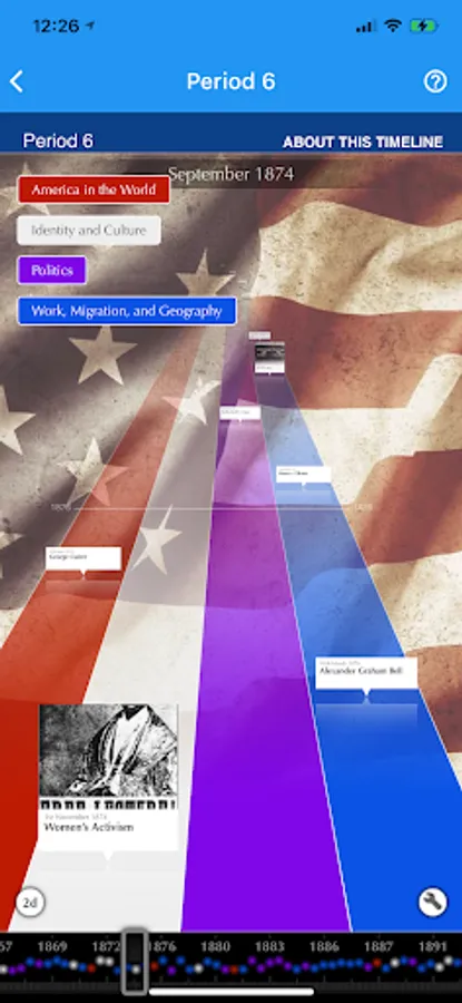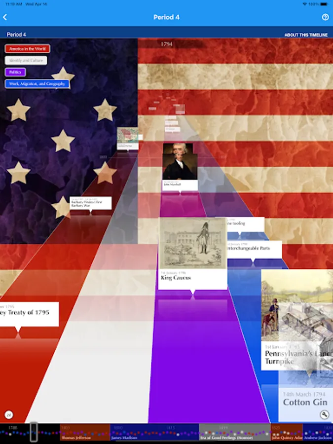 * Interactive timelines - History is a story! Our timelines help you visualize how these stories connect with multiple views, appended visuals, and highlighted themes.