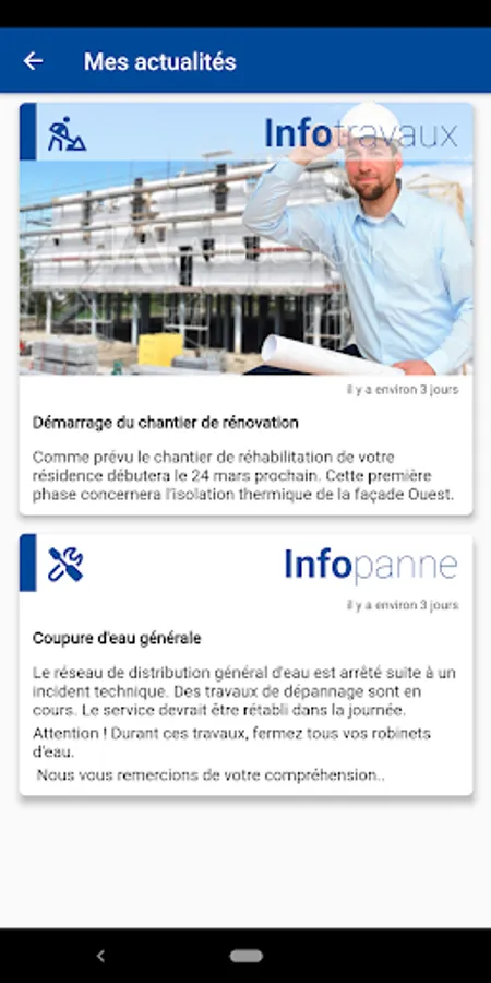With the Batimize Bedier application you will be able to: consult the news of your site, receive notifications, follow the events via an agenda, give your opinion, communicate easily via a messaging, make online appointments and consult all the documents explaining the progress of the work.