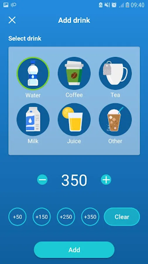 Remember that water occurs also in other liquids; coffee, juice, tea or milk. Our application enables you to add every kind of drink so you can be very precise in controlling your hydration level.