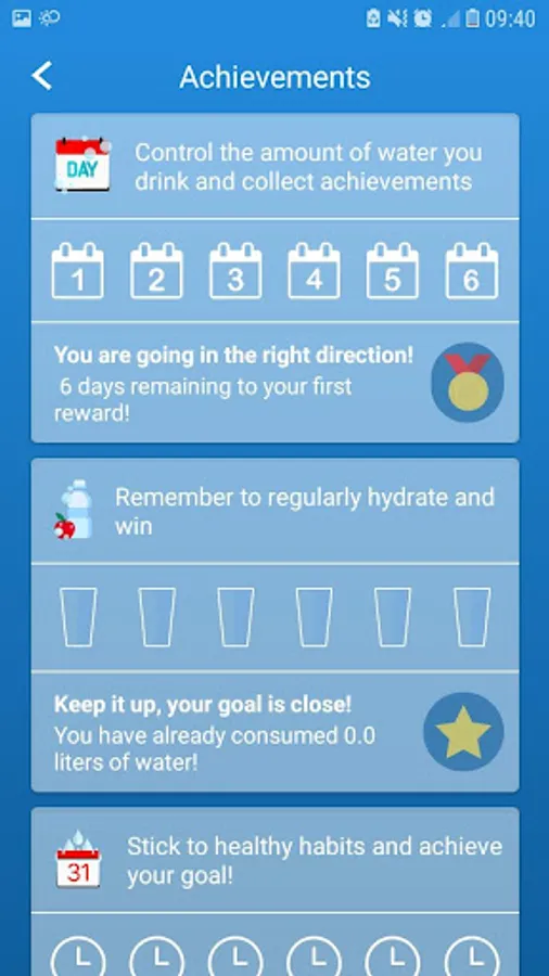 Drink Water Reminder will help you to control level of hydration properly to your needs and your lifestyle. Drinking water will become a routine and your organism will soon feel that change.