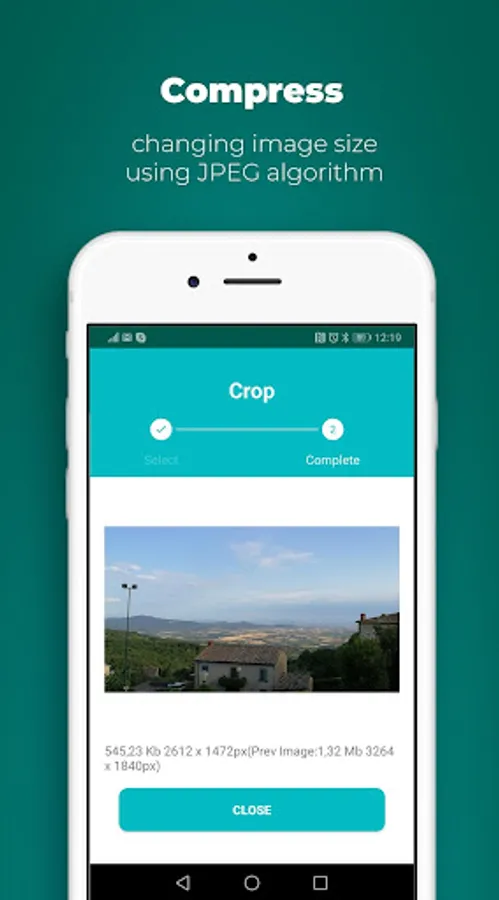 * Compress – changing image size using JPEG algorithm (method of lossy compression for digital images) reducing image size.