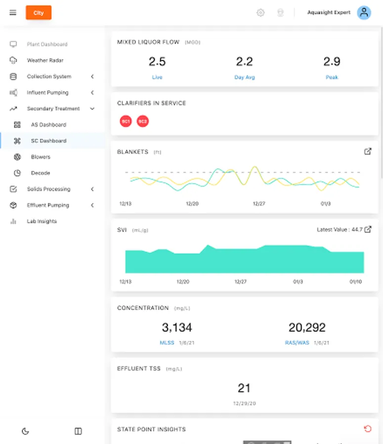 Apollo is an intelligent AI-based system that combines SCADA and lab data to provide system performance, insights, and advice in real-time. It is accessible from anywhere and does not require VPN’s or other local network connections. Apollo works with all unit processes including Collection intelligence, Pumping performance, Activated sludge, Secondary clarifiers, Disinfection, and solids management. The app includes SAMI autonomous alerting and Smart Reports.