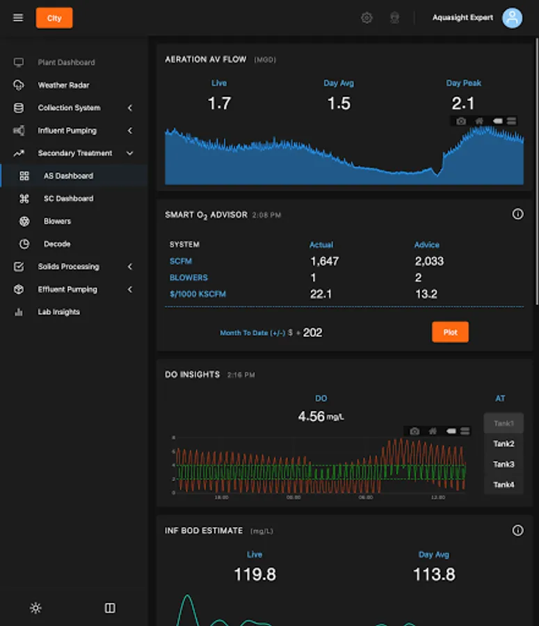 • Aquasight not only provides augmented intelligence for the utility staff to drive optimal performance but also built into the app is SAMI an autonomous monitoring 24x7 reliable digital assistant, notifying whenever inefficient conditions arise or when the system operates outside the guard rails.