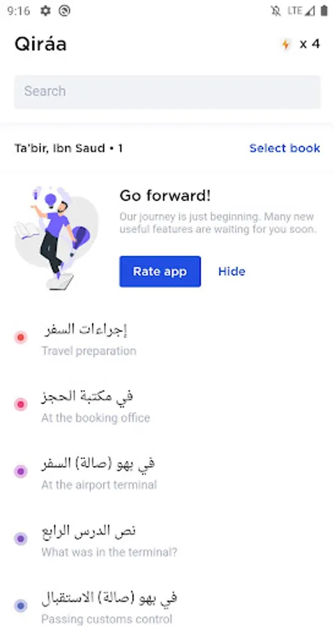 Qiráa is an application for learning Arabic language through reading dialogues and texts. 📚