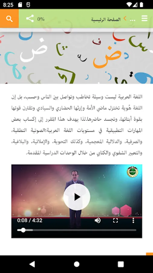 The updated electronic application for the Arabic language course 1 at Al-Quds Open University