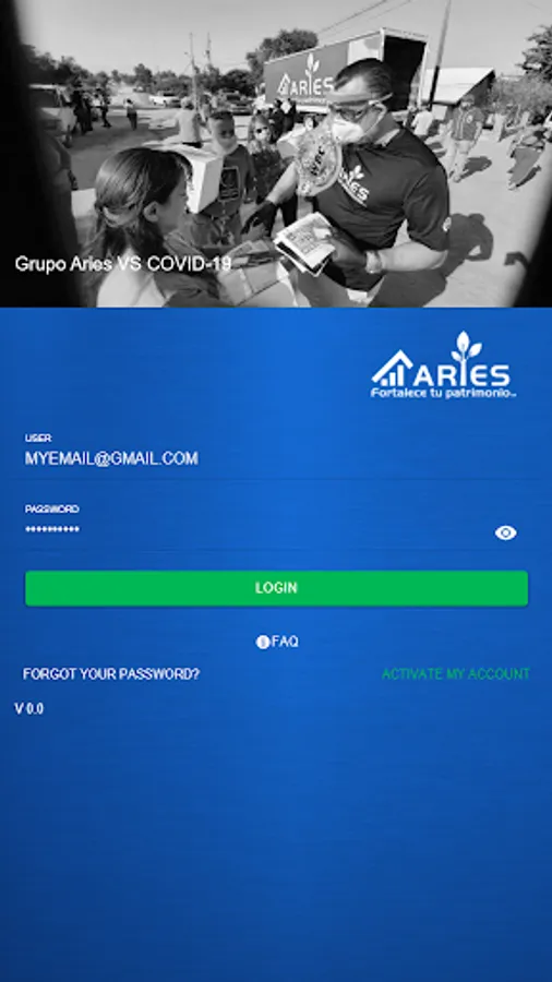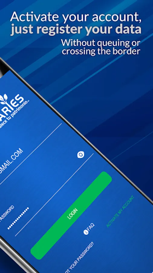 -When logging into the App Grupo Aries select the Activate my account option. Located at the bottom right-hand side of your screen.