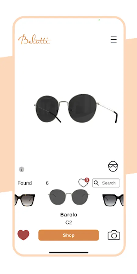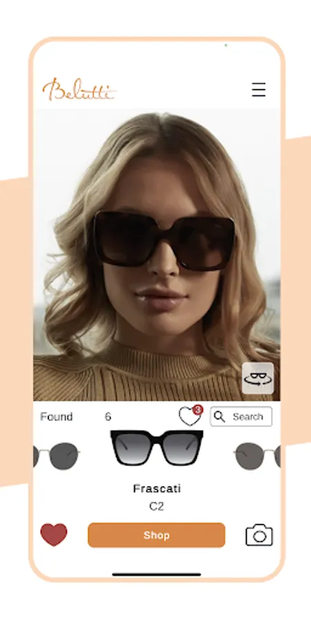 Our application allows you to try on various models of Belutti frames using the mobile application. It is very easy. All you need to do is open the application and choose a model for you. Position your face in front of the camera and your model will appear on the screen in augmented reality (AR) technology.