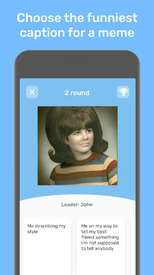 The leader (changes every round) has to determine subjectively whose combination of image + text is the most funny. The duration of the game is determined independently: how much free time and energy you have to laugh. The winner is determined by the total number of points. Each round, the author of the funniest meme gets 1 point. Intermediate results can be viewed at any time in the scoreboard.