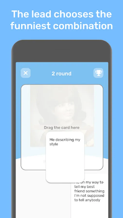 It's simple: an image appears on the screen, to which you need to choose the funniest text card from among the hand of 5 cards.