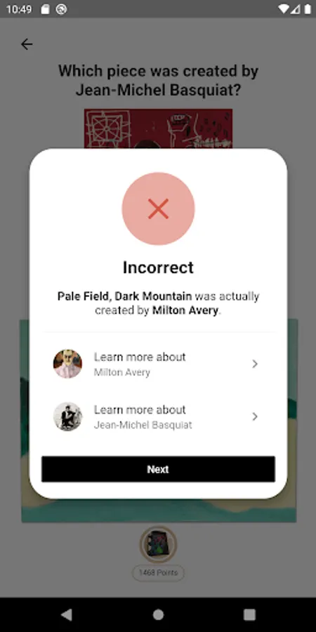 Pick a category that fits your expertise, whether it be Contemporary Art, Old Masters, Modern Art, Impressionists, or Urban Art. Once selected, you are shown a set of questions asking if you can identify the piece of art created by the artist in question. If you can, then you'll earn points and badges to help prove yourself on the Art Master leaderboard. If you can not, then you'll have the opportunity to educate yourself on the artist by reading detailed biographies and viewing high-quality images of their masterpieces around the world.