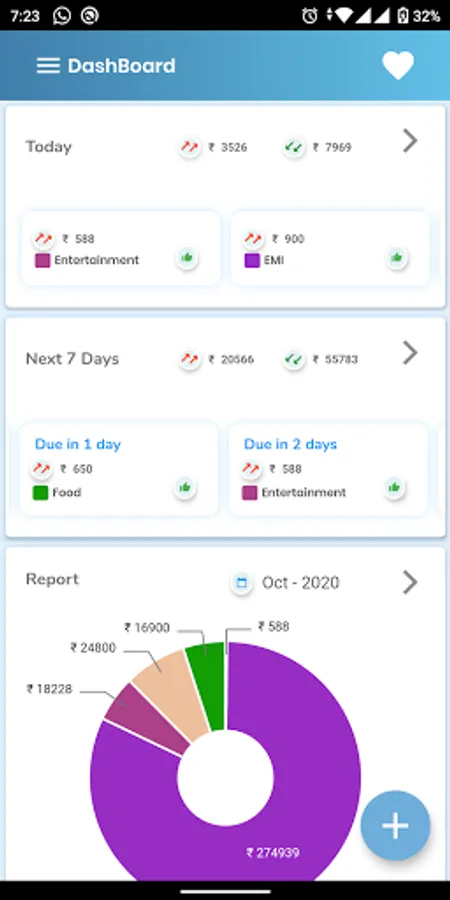 * Charts on reports of your bills and money status.