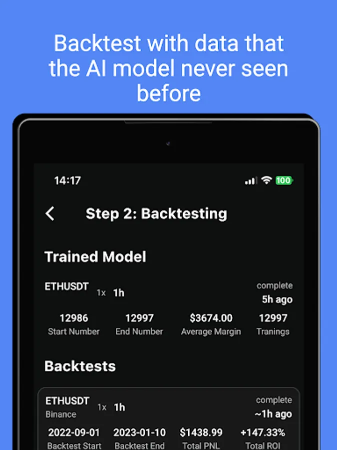- Backtesting only real data that the AI model never seen before, proving stable profit in live trading