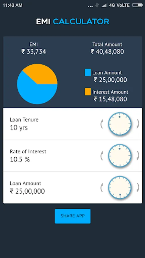 EMI Calculator app is an app to help you calculate the EMI for all types of loans such as Personal Loan, Home Loan, Education Loan etc. Use this app to calculate your EMI (Equated Monthly Instalment), plan your loan repayment in an effective way.