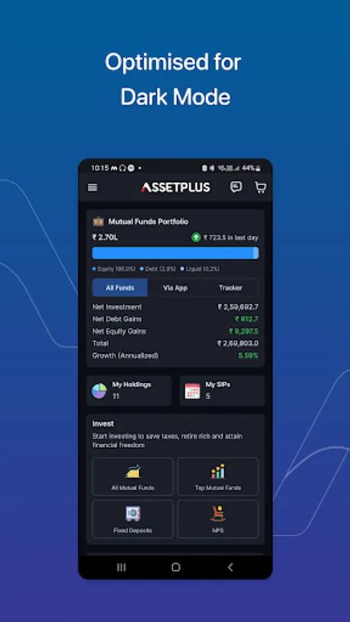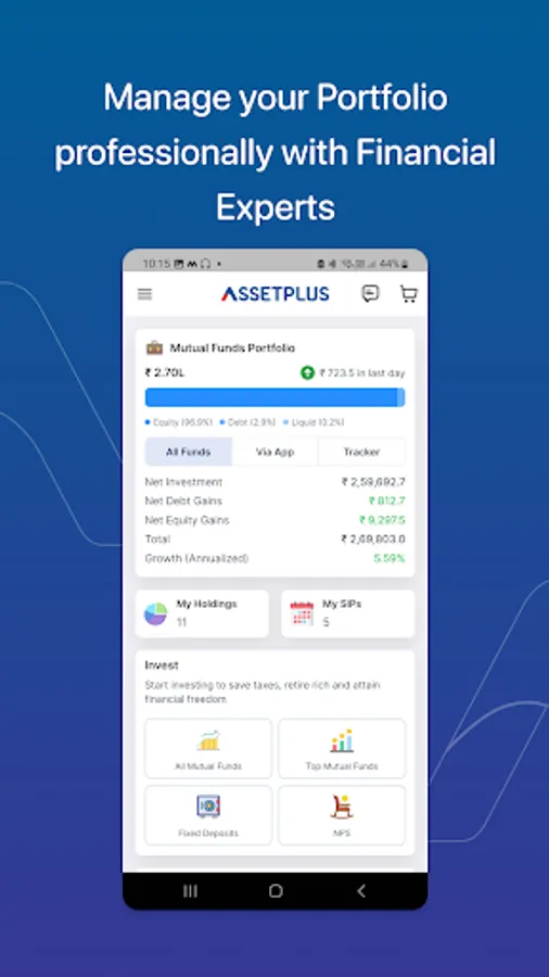 AssetPlus is India’s leading digital platform for Mutual Fund & SIP Investments. We manage Mutual Fund investments for over 30,000 families and more than 1100+ crores of AUM. We provide Mutual Fund investment services and related financial advisory services including Goal based Planning, Tax Planning and Retirement Planning.