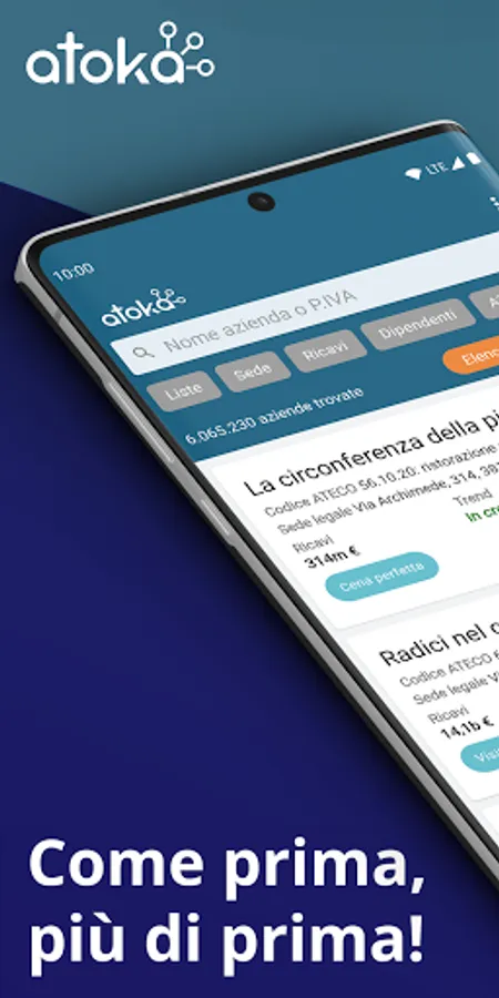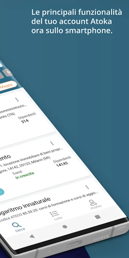 Con l’app gratuita di Atoka ritrovi le principali funzioni del tuo account Atoka direttamente sullo smartphone!