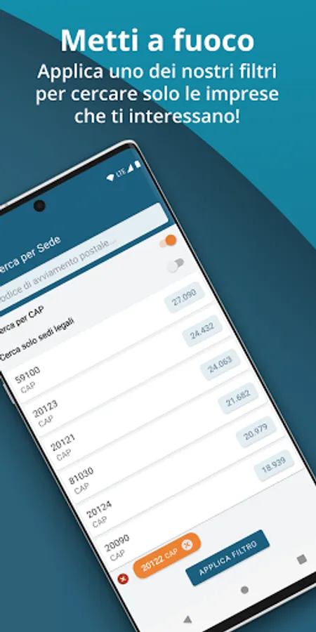 utilizzi molteplici filtri per cercare e segmentare le aziende in database,