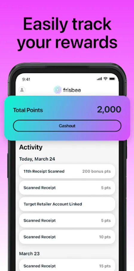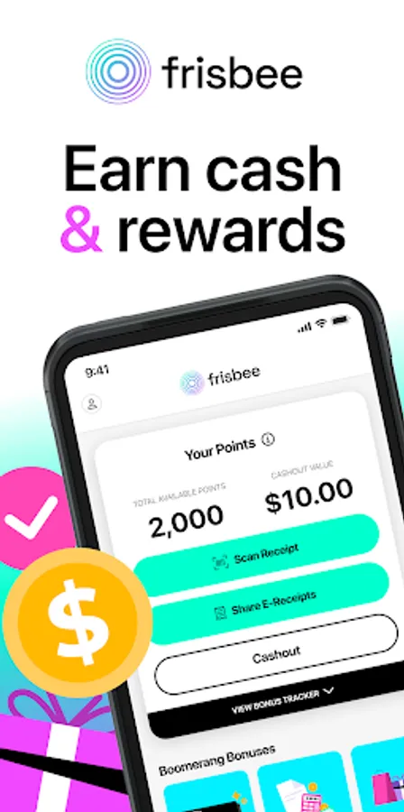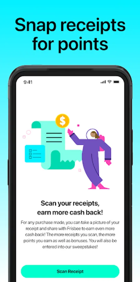 Frisbee rewards you for both physical and e-receipts, so you always have a chance to earn cash or gift cards.