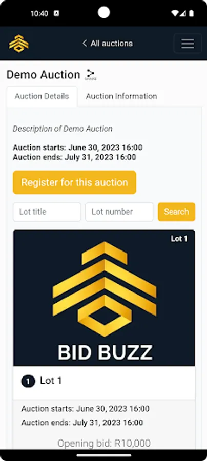 If you need to join and bid online at a Bid Buzz auction, simply download the app to register and take part in the online bidding. Register for an account. Once approved you can bid online. Watch an auction in real-time and access our auction from anywhere.