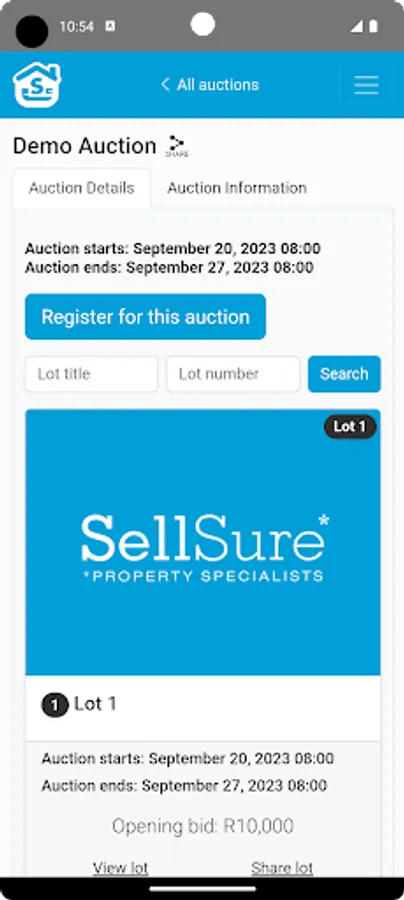 If you need to join and bid online at a SellSure auction, simply download the app to register and take part in the online bidding. Register for an account. Once approved you can bid online. Watch an auction in real-time and access our auction from anywhere.