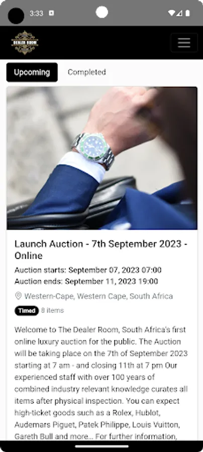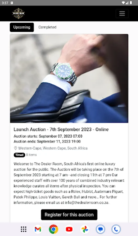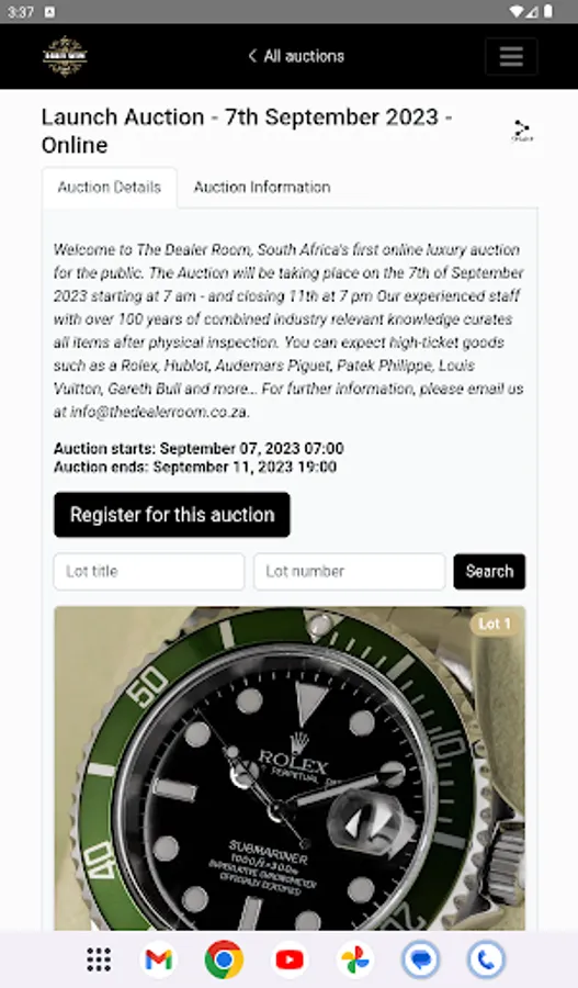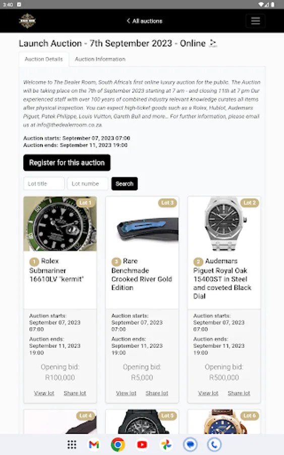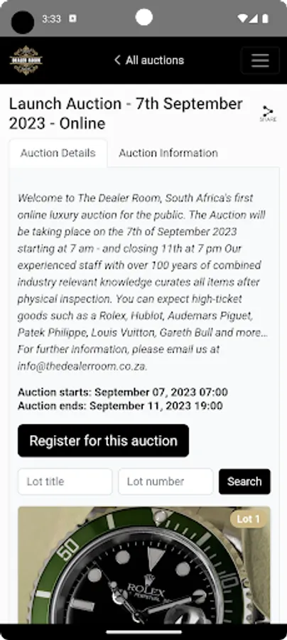 If you need to join and bid online at a Dealer Room auction, simply download the app to register and take part in the online bidding. Register for an account. Once approved you can bid online. Watch an auction in real-time and access our auction from anywhere.