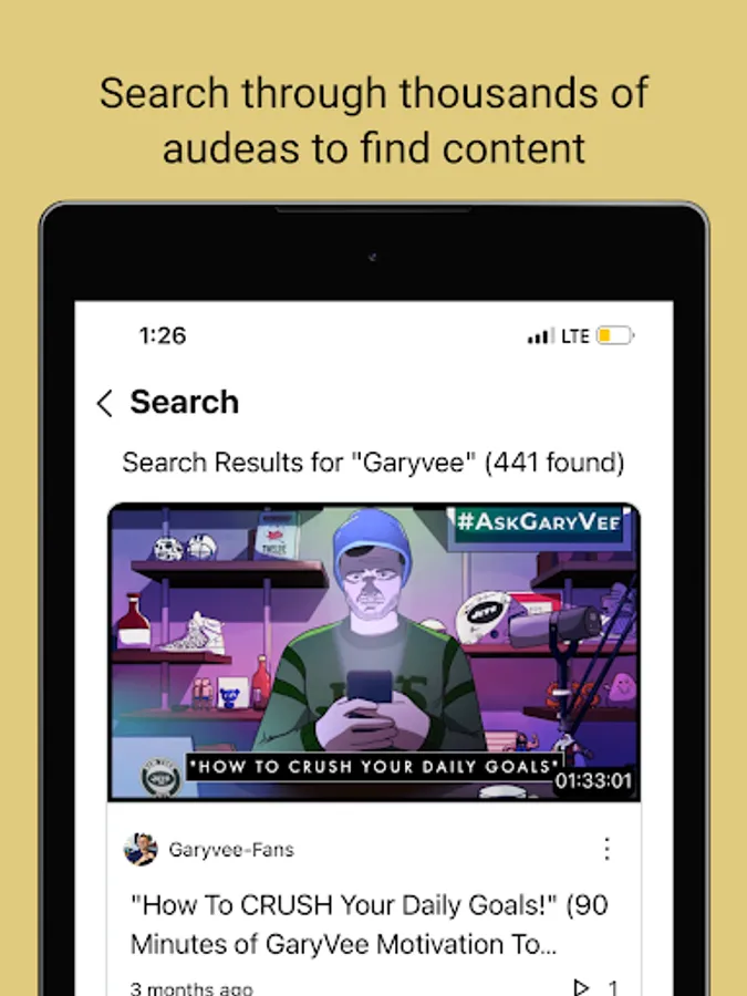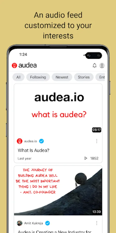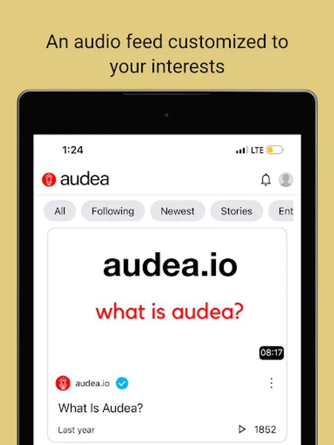 Audea is a native, centralized platform where you can upload an audio-idea with a thumbnail, title, tags, and a description in order for it to be better recommended to consumers searching for new audio ideas.