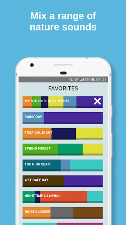 Relax and sleep better with a variety of relaxing sounds, which you can mix to your liking. From rain and nature sounds, to cafe ambiance and white noise. Relaxify is a small download with low battery usage and 14 high quality 3D stereo sounds, from rain and forest sounds, to ocean waves and womb sounds.