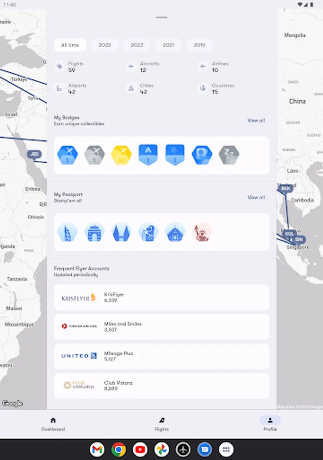Avgeek is a personal flight and travel companion that helps you track your flights in real-time, unlock rich insights about your aviation journey, and much more. Furthermore, it helps you view stats, frequent flyer accounts and more in a single place accessible from anywhere, anytime. Avgeek Passport is built by avgeeks like you, and we know how deeply you care about privacy. We never sell your data and never will.