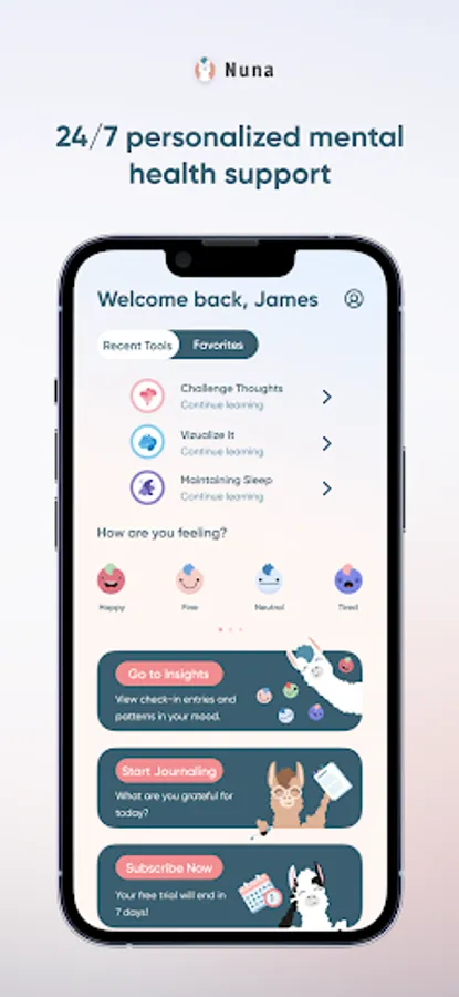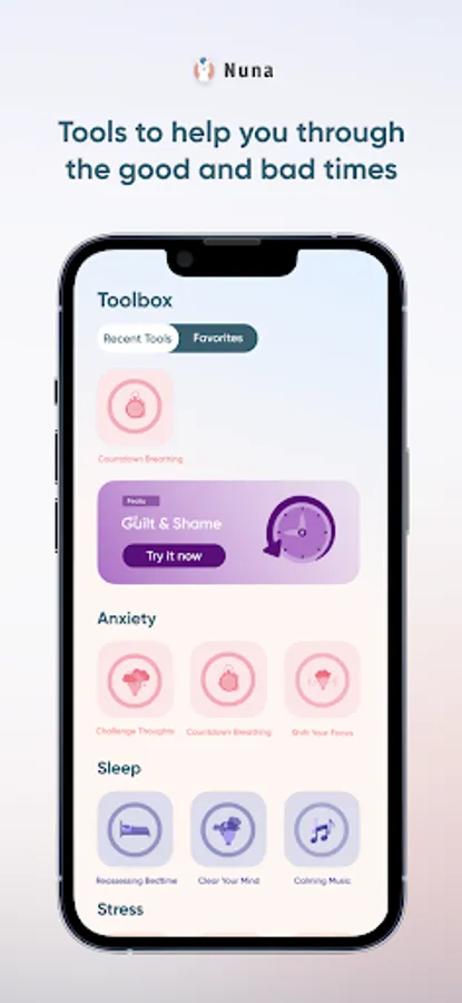 It's ok not to be ok. Nuna is your mental health companion here for you through life's ups and downs. Learn to identify and work through stress, anxiety, depression, and other challenges associated with your mental state. Nuna offers AI powered Congnitive Behaviorial Therapy (CBT) using a full suite of tools, exercises, journaling, and Nuna's AI powered chat.