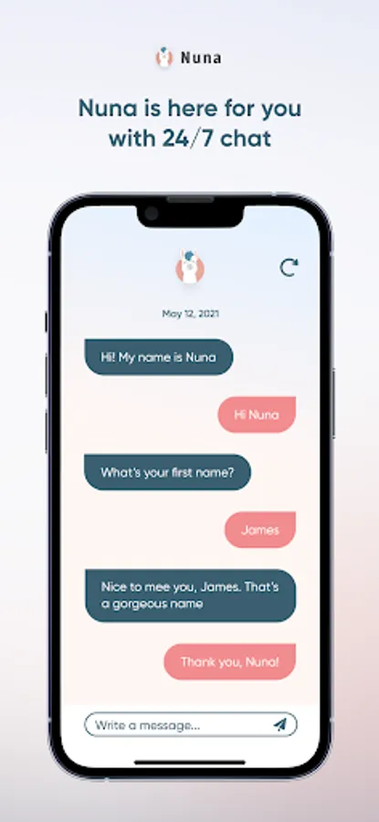 Nuna is built with you in mind by a team of psychologists with a mission to create a safe space for early intervention for mental health challenges. Whether you're having a great day or a bad day, Nuna is here for you with the best in Cognitive Behavior Therapy techniques which have been used by clinicians and therapist to help millions of people worldwide.