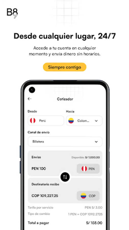 - Send money instantly from Peru to the rest of the world.