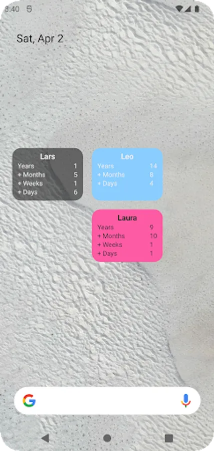 Have you ever been asked how old your baby/child (or yourself) is? The widget of this app provides you at any time with the necessary information.