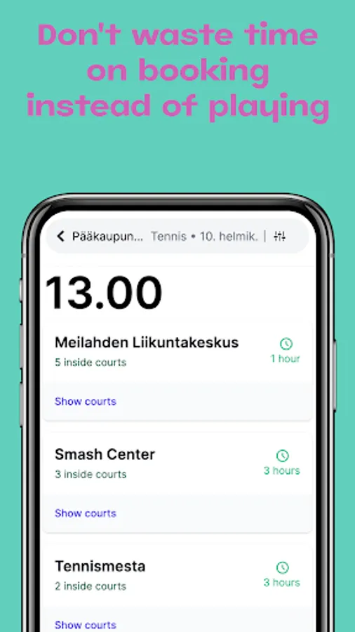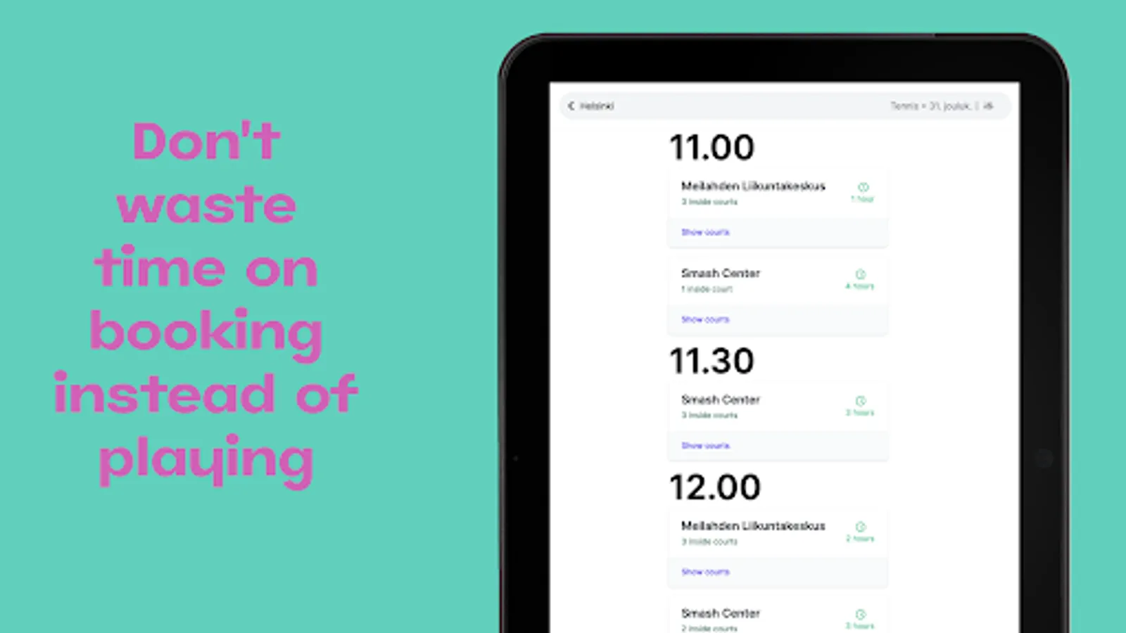 Don’t waste time on booking instead of playing. Balley finds all the available playing times in your area with just one search. From tennis and padel to badminton and squash, we have everything you need to stay active and have fun. So grab your racket and get ready to play!