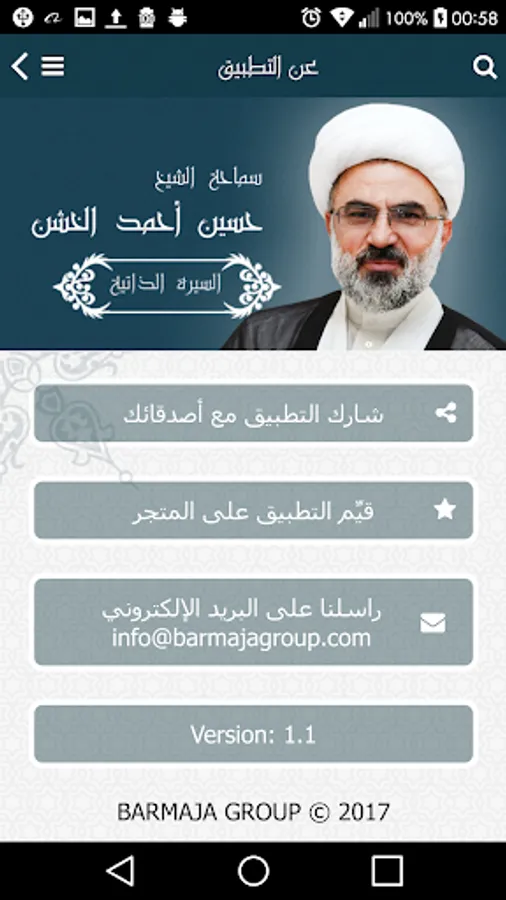 The application talk about Sheikh Hussein's latest intellectual activities of articles, lectures, books and news
