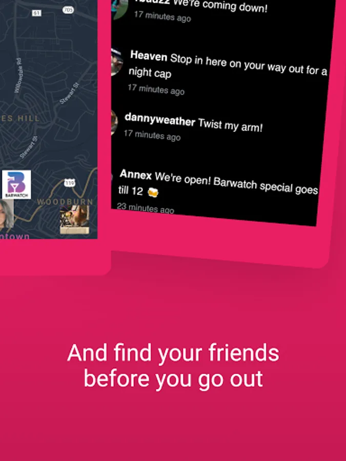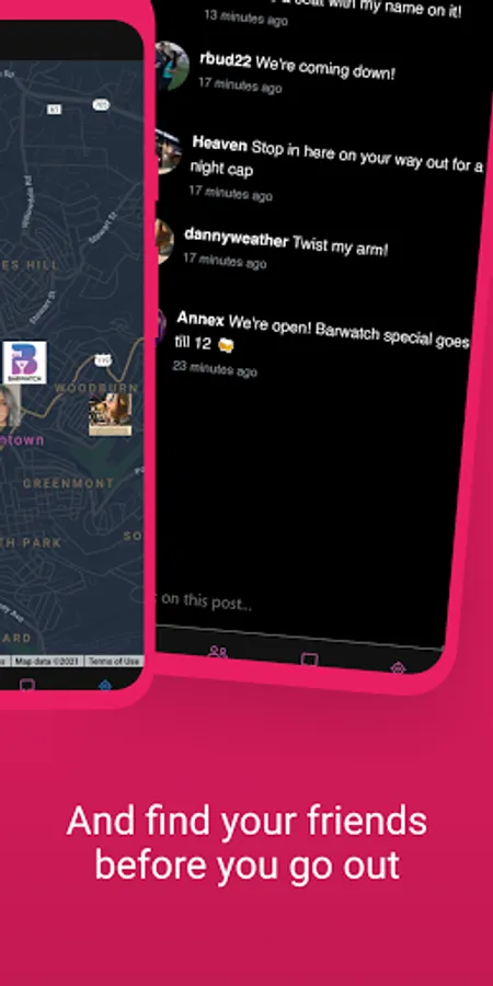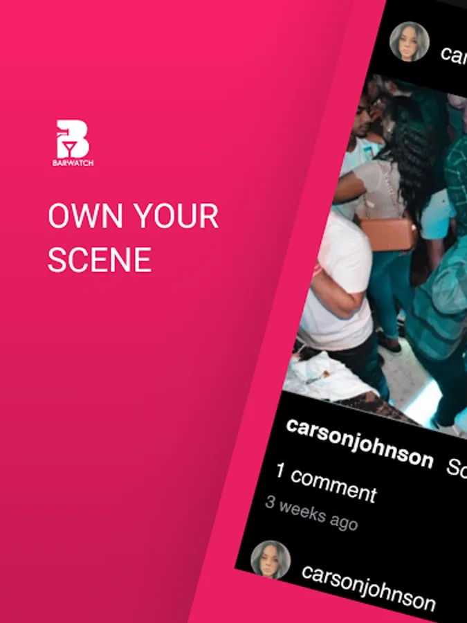 Go out and own your scene through BarWatch. Founded in 2020, the launching of our app will innovate nightlife as you know it. Our users will view the scene before their night begins via access to live-stream and real time crowd levels, bar specials, and presale event tickets and discounts. You can even connect with friends through data and location services.