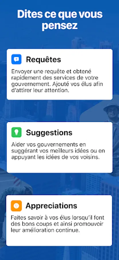 - Suggestions, help your governments by submitting new ideas and supporting existing ones already posted by your co-citizens.