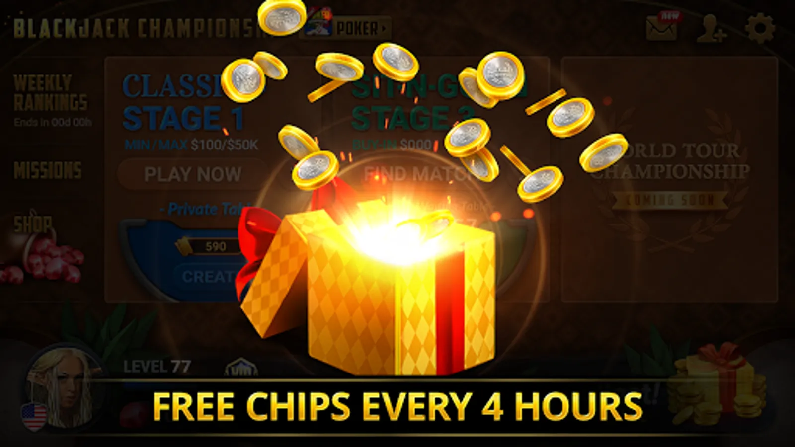 • FREE CHIPS EVERY 4 HOURS : All you need to do to get free chips is just come back every day.