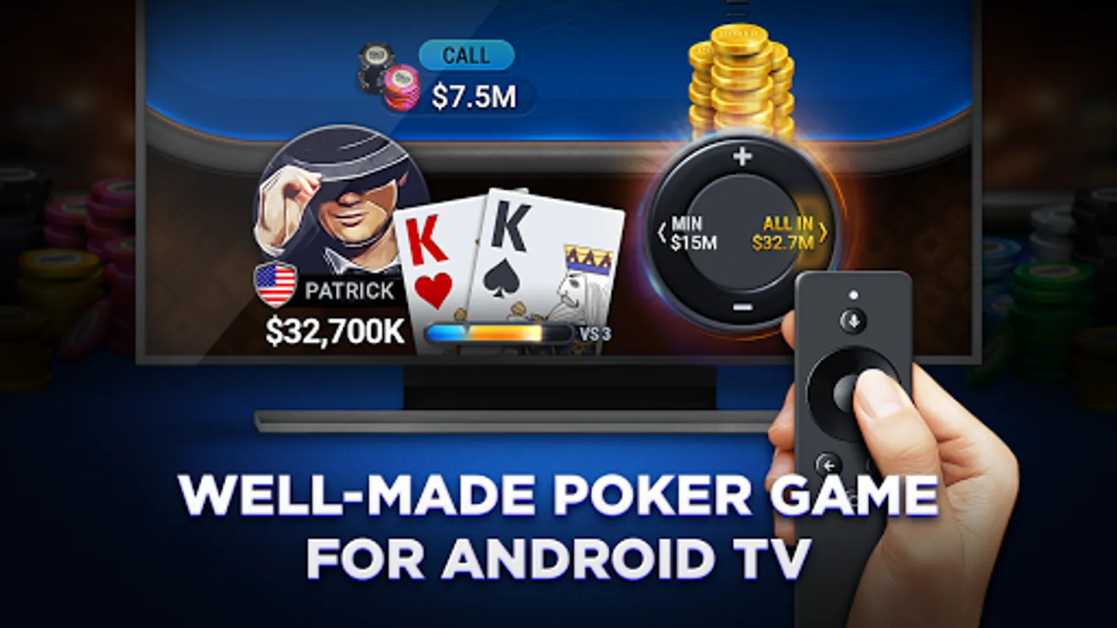 • CONTINUOUS PLAY : Start playing poker on your phone or tablet and continue on TV or PC with the same bankroll!