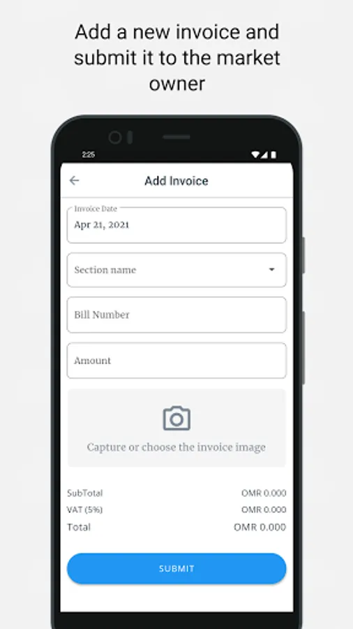 This app gives a market owner the ability to receive invoices from shops in a market. The shop manager will upload the invoice using this app and the market owner can manage the invoices and get reports based on these invoices on a admin panel.