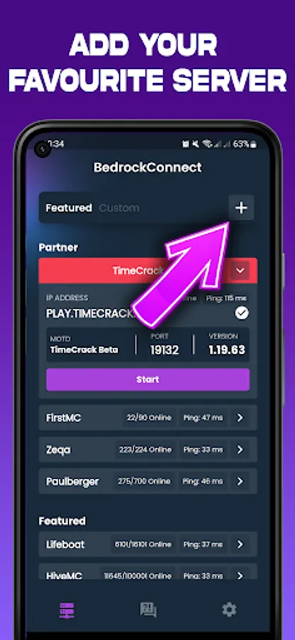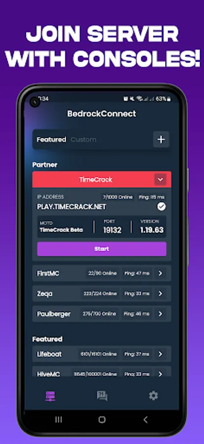 6️⃣ Start the supported server in the BedrockConnect app.