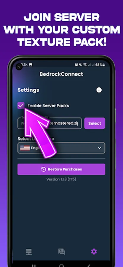 1️⃣ Go to the app settings and enable "Serverpacks".