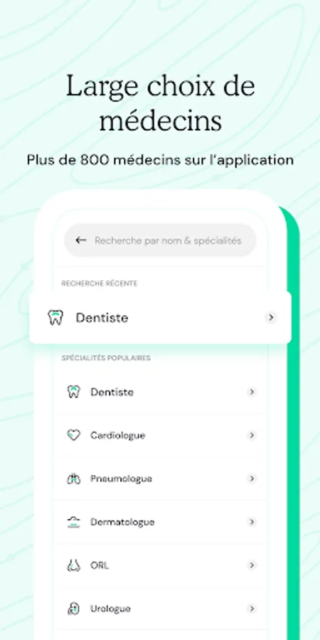 - Facilitate the search for your doctor according to his specialty, his name or his region