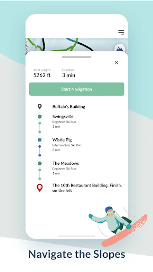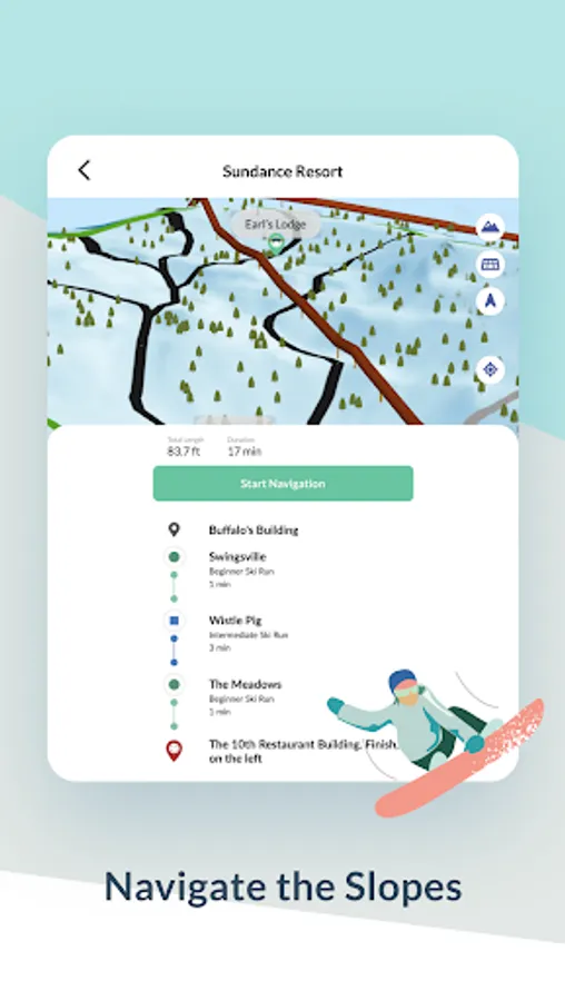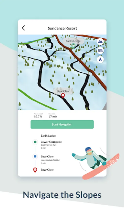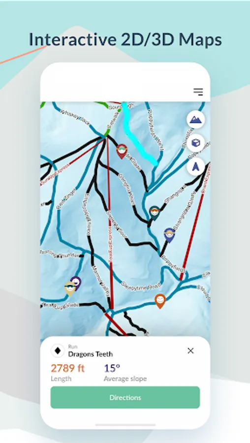 • Navigate the Slopes - By skill level, plan your route and navigate the mountain with turn-by-turn directions. In addition to runs and lifts, find resort amenities (e.g., restaurants and restrooms).