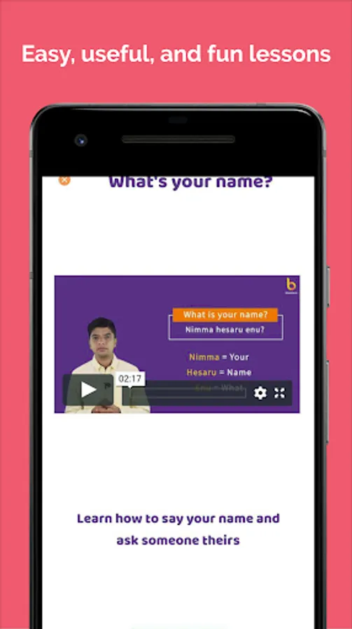 Bhasha.io focuses on personalised learning and everyday usefulness. Too many language tutorials forget the practical utility of the language. Start speaking simple and correct sentences from the first lesson! Soon you will be surprising your friends with your Kannada fluency :)